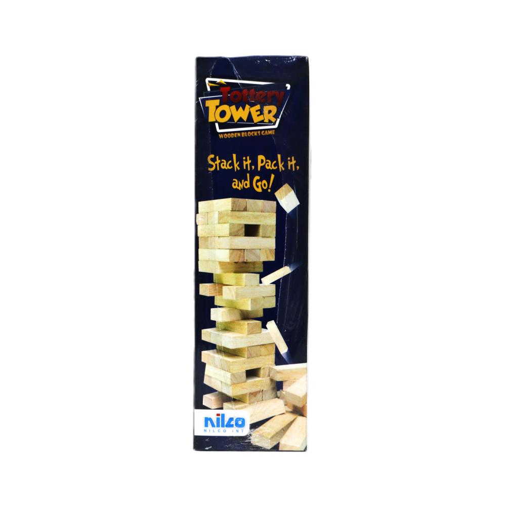 الأدوات: تتضمن اللعبة مجموعة من قطع الخشب المستطيلة (عادة ما تكون 54 قطعة) تُستخدم لبناء البرج. كل قطعة خشبية لها نفس الحجم والشكل.