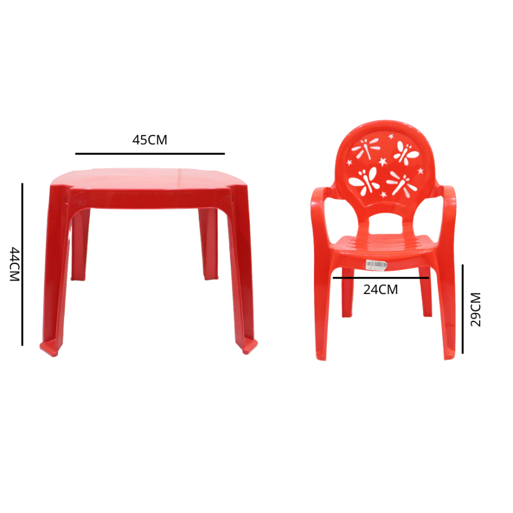 ارتفاع الكرسي والطاولة مصمم ليتناسب مع جلوس الأطفال بشكل مريح ودون إجهاد.