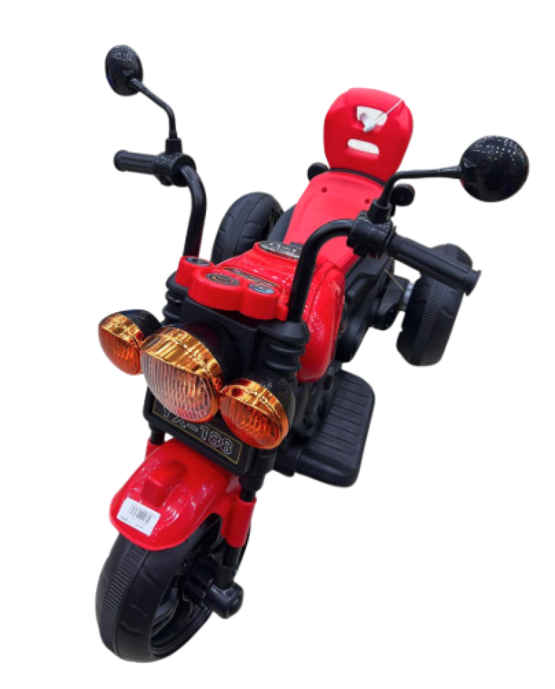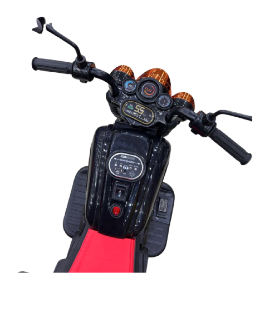 A children's electric bike with a distinctive sporty design, featuring bright, attractive colors, providing a realistic and safe riding experience for little ones. Ideal for indoor and outdoor play.