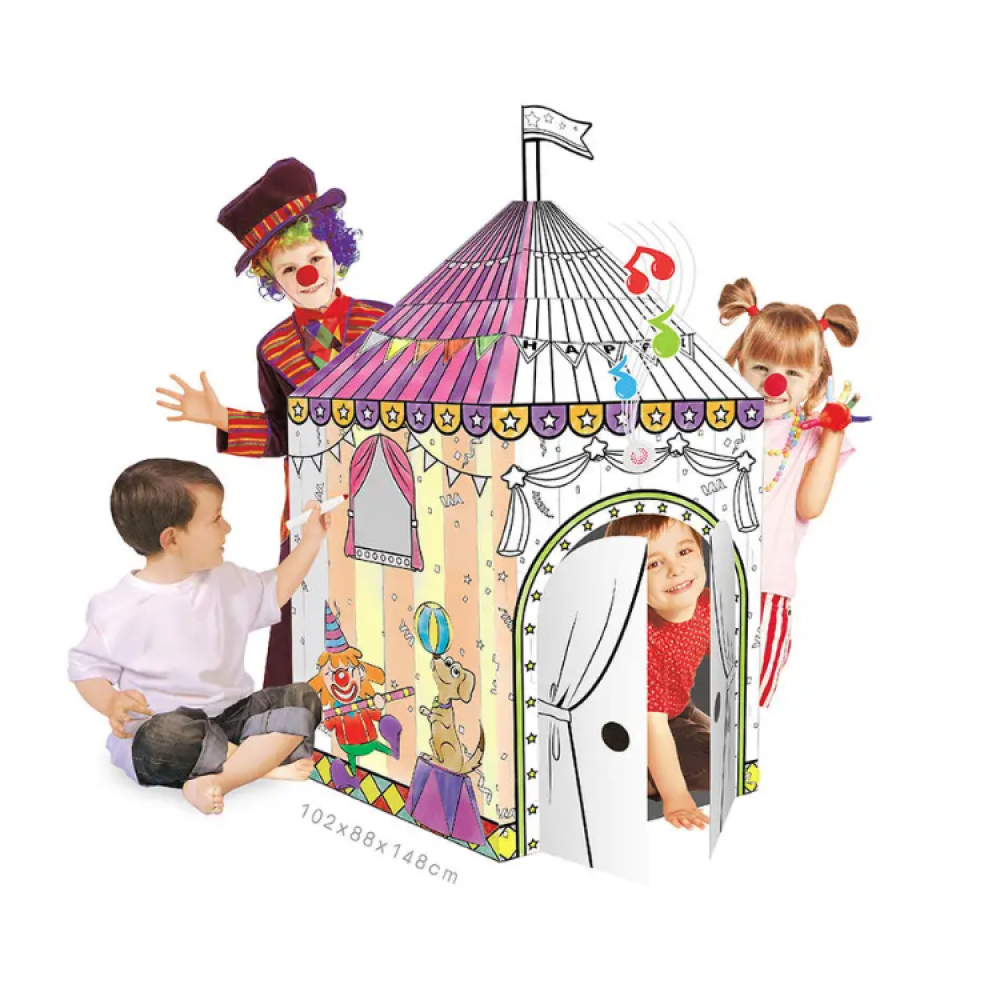 A paper house for kids with rattan artwork. Children can paint the house with their favorite colors and have unlimited creativity. This paper house helps develop children's motor skills, cognitive development, and social growth.